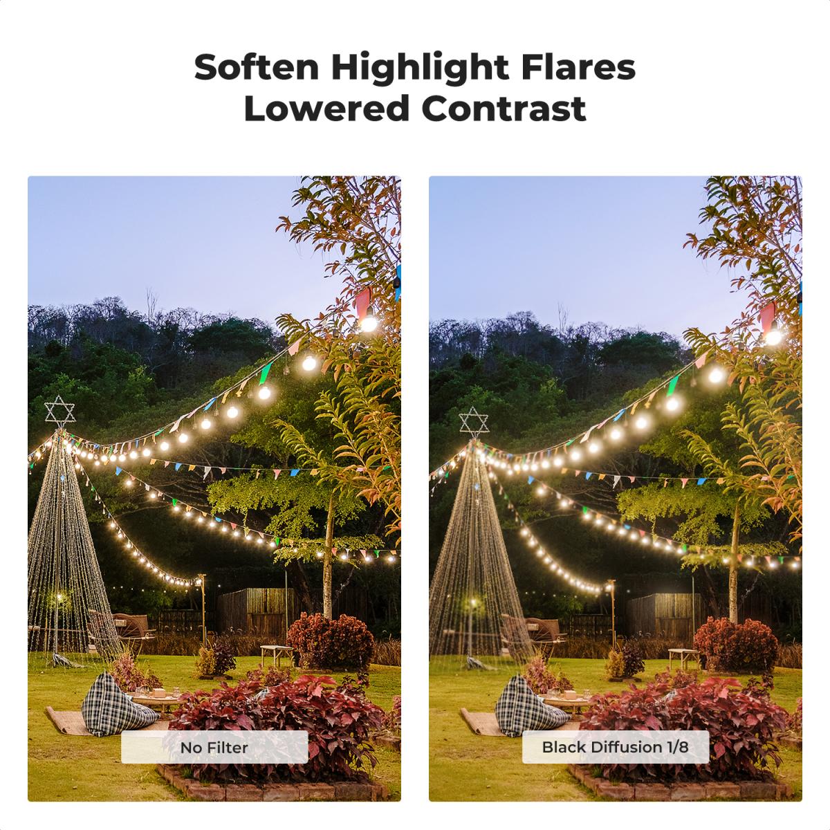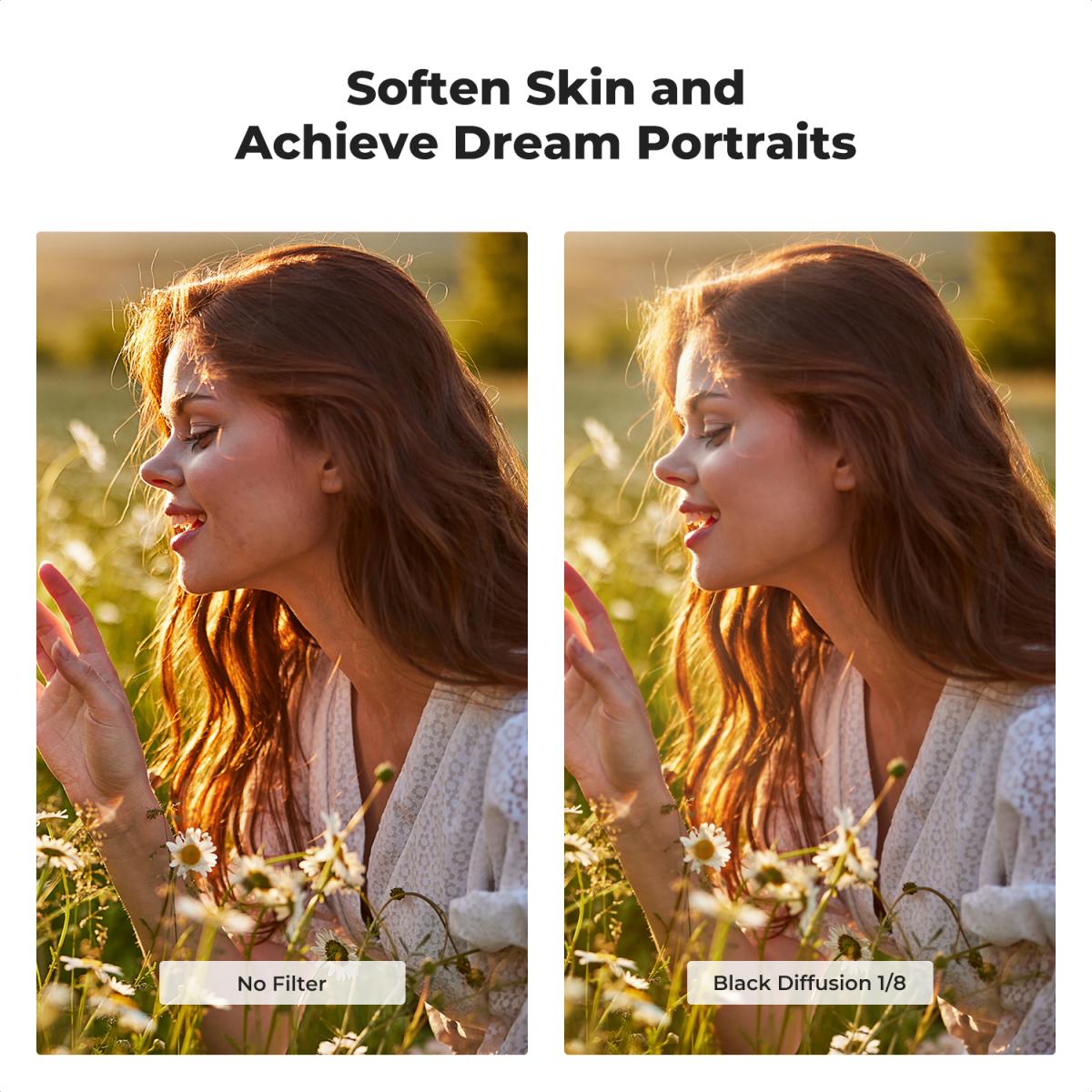 - * Черный мягкий фильтр 1.1 / 8 может смягчить морщины, пятна, поры и т. Д. На человеческой коже, что позволяет лучше реализовать более нежные, пухлые, красивые и туманные эффекты кино. Чтобы обеспечить качество изображения сверхвысокой четкости, используется процесс шлифования с двойным метанием, чтобы обеспечить возможность достижения высокой четкости в пределах фокусного расстояния 550 мм;