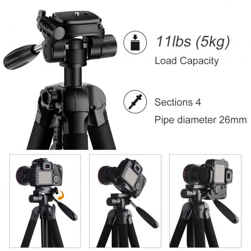 Штатив для телефона 69,7"/177 см Штатив для цифровой зеркальной фотокамеры, нагрузка 8,8 фунта, с креплением для телефона, поворотной головкой в трех направлениях и съемным моноподом TM2624L