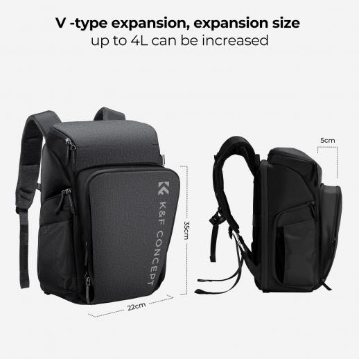 K&F Concept Camera Alpha Backpack Air 25L, Сумки для фотоаппаратов для фотографов большой емкости с дождевиком, серый