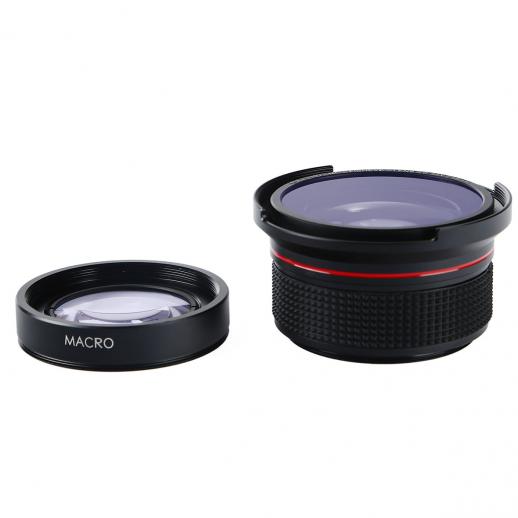 • Includes: Wide angle fisheye lens with macro portion, front and back lens cover, and a protective lens bag.