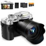 4K цифровая камера для фотографии, 12-кратный оптический зум, 75 МП, 180° поворотный экран, WiFi видеокамера для блогинга, YouTube, Kentfaith