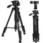 TM2324L Черный Портативный Компактный Штатив 56 дюймов для Мобильного Телефона Видеокамеры 3-полосный Поворотный Pan Tilt Head