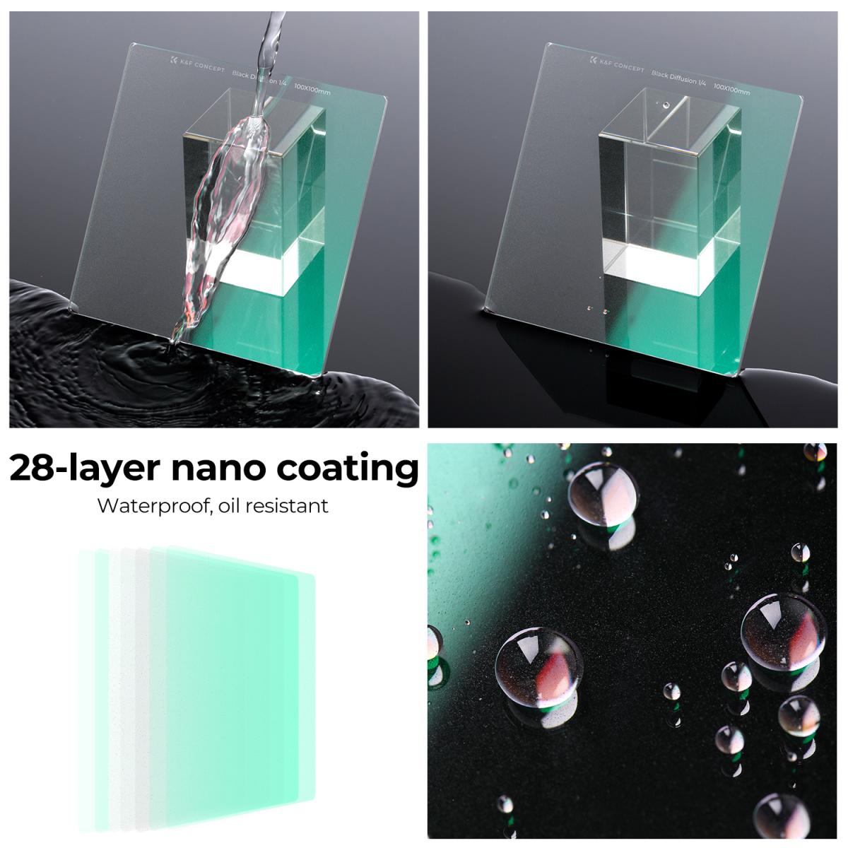 - * 【Импортное оптическое стекло AGC】K&F Concept черный диффузионный фильтр 1/4 Изготовлен из японского оптического стекла AGC, многослойное покрытие снижает коэффициент пропускания до 84%, эффективно уменьшает отражение поверхности фильтра.