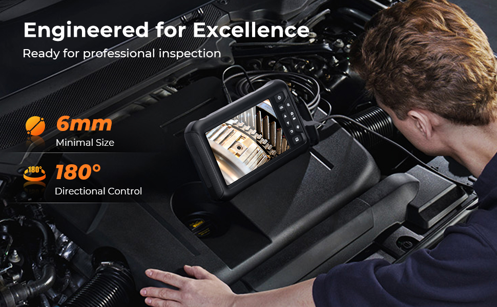 - Эта инспекционная камера идеально подходит для профессионалов в области ремонта автомобилей, аэрокосмических и производственных инженеров, специалистов по промышленному обслуживанию и техников по ремонту электроники, обеспечивая точный осмотр в труднодоступных местах.