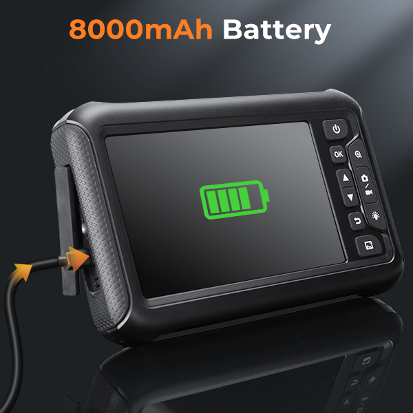 - * Аккумулятор 8000 мАч и регулируемая подсветка:nЧетыре встроенных светодиода с 5 уровнями яркости обеспечивают четкую видимость в различных материалах и условиях освещения — без пересветов или темных пятен. Оснащенный перезаряжаемым аккумулятором емкостью 8000 мАч, промышленный эндоскоп Kentfaith обеспечивает до 5 часов непрерывной работы, а благодаря зарядке Type-C вы быстрее вернетесь к работе.